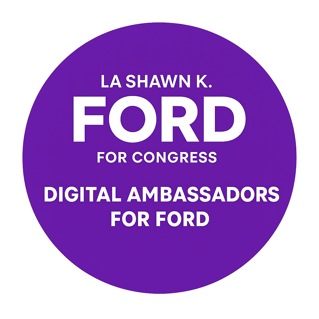 We’re excited to launch our new Team Ford Social Media Profile Badges — a simple, powerful way to show your support for La Shawn K. Ford’s campaign. These badges help unify our online community, strengthen our digital presence, and highlight the incredible volunteers and ambassadors driving this movement. Download yours today, update your profile badge, and join us in building a visible wave of support across the 7th District. Let’s make our voices — and our profiles — count.